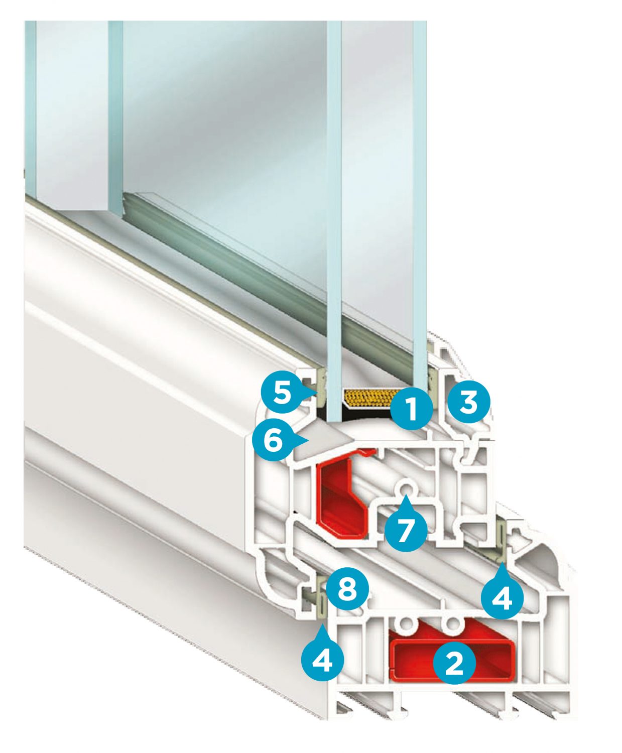 The additional chamber enables galvanised steel reinforcement to be used for greater strength and rigidity. (image shows steel reinforcement) Our unique design for the reinforcement ensures optimum strength and rigidity without compromising thermal efficiency.